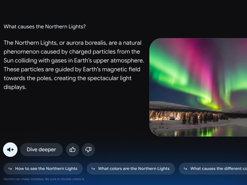 Gemini میتواند از طریق یک چارچوب بصری جدید و غنی به پرسشهای کاربران پاسخ دهد؛ چارچوبی که متناسب با هر پرسش تنظیم میشود و در صورت نیاز، متن، تصاویر، زمینه ویدیویی و بهروزرسانیهای زنده ورزشی را با هم ترکیب میکند.
